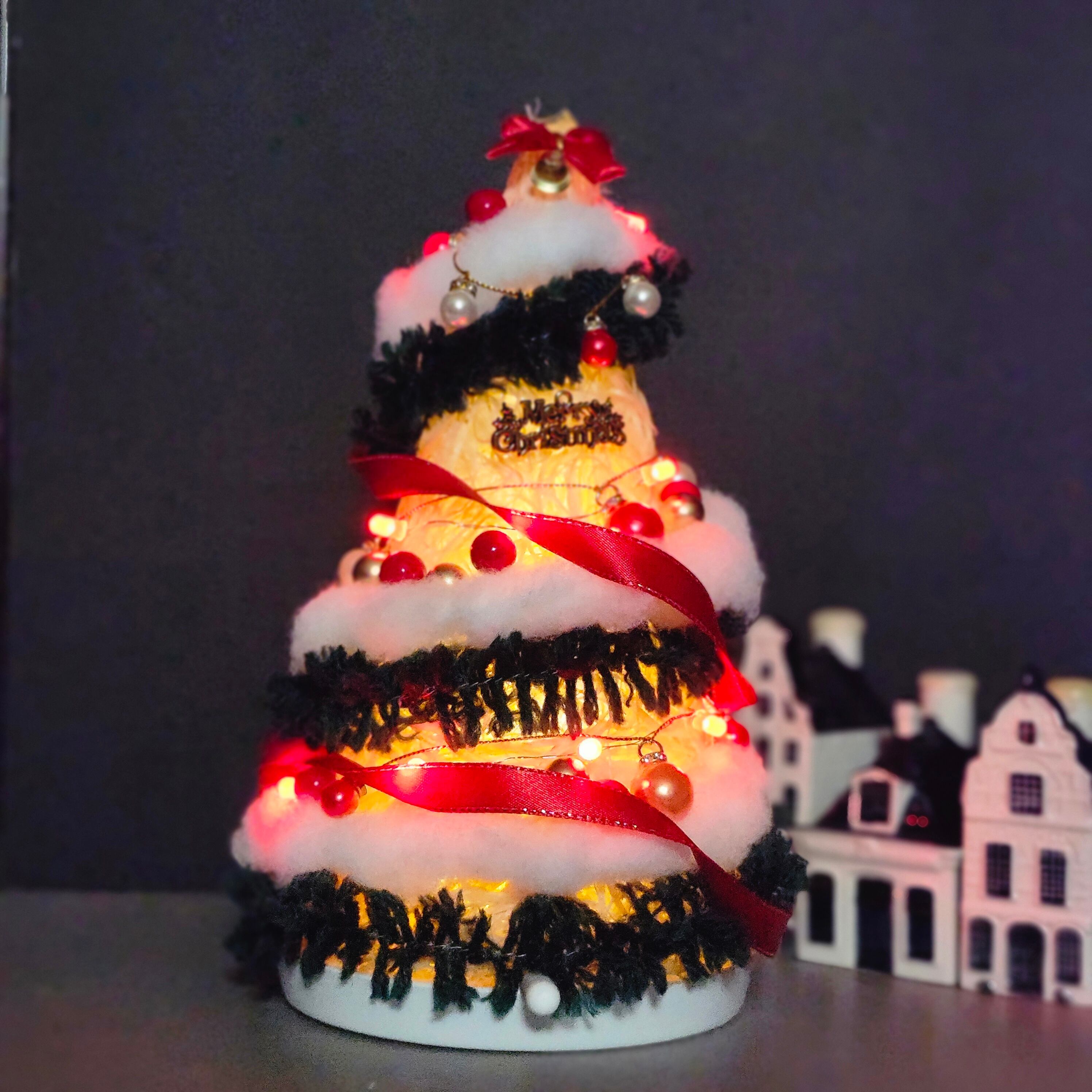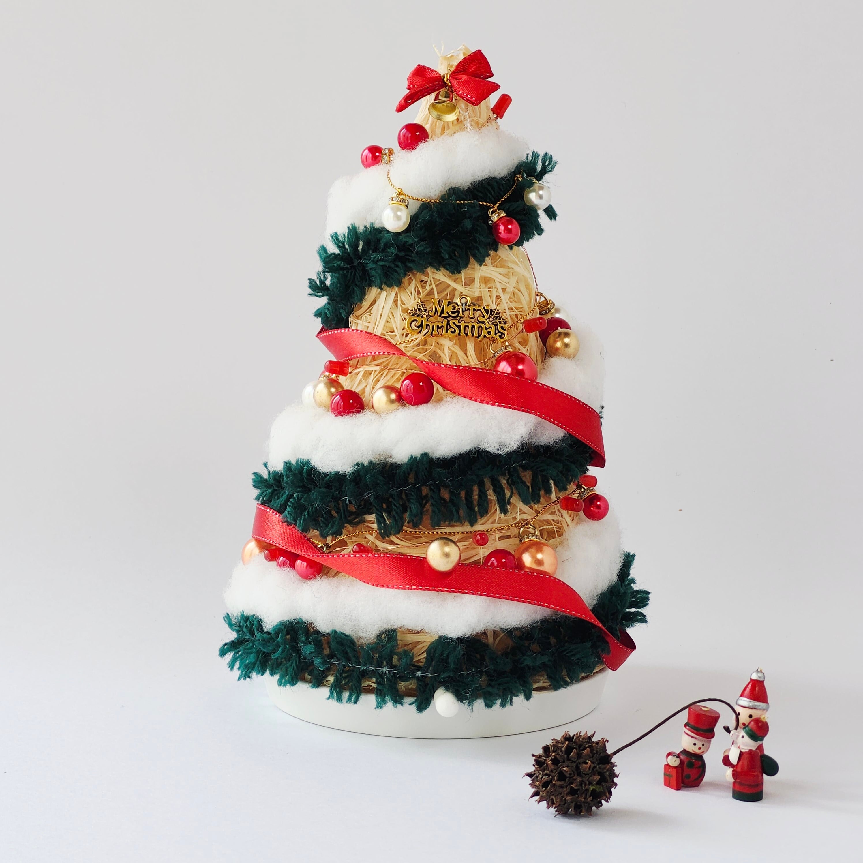 ツリー本体(Woodwool Tree Basic + 外部ソケット付)とXmas飾りをセットにした「Xmasツリーセット」です。ツリーの内部だけでなく外部からも光り、小型(高さ約25㎝)ですが華やかさと存在感は抜群です。