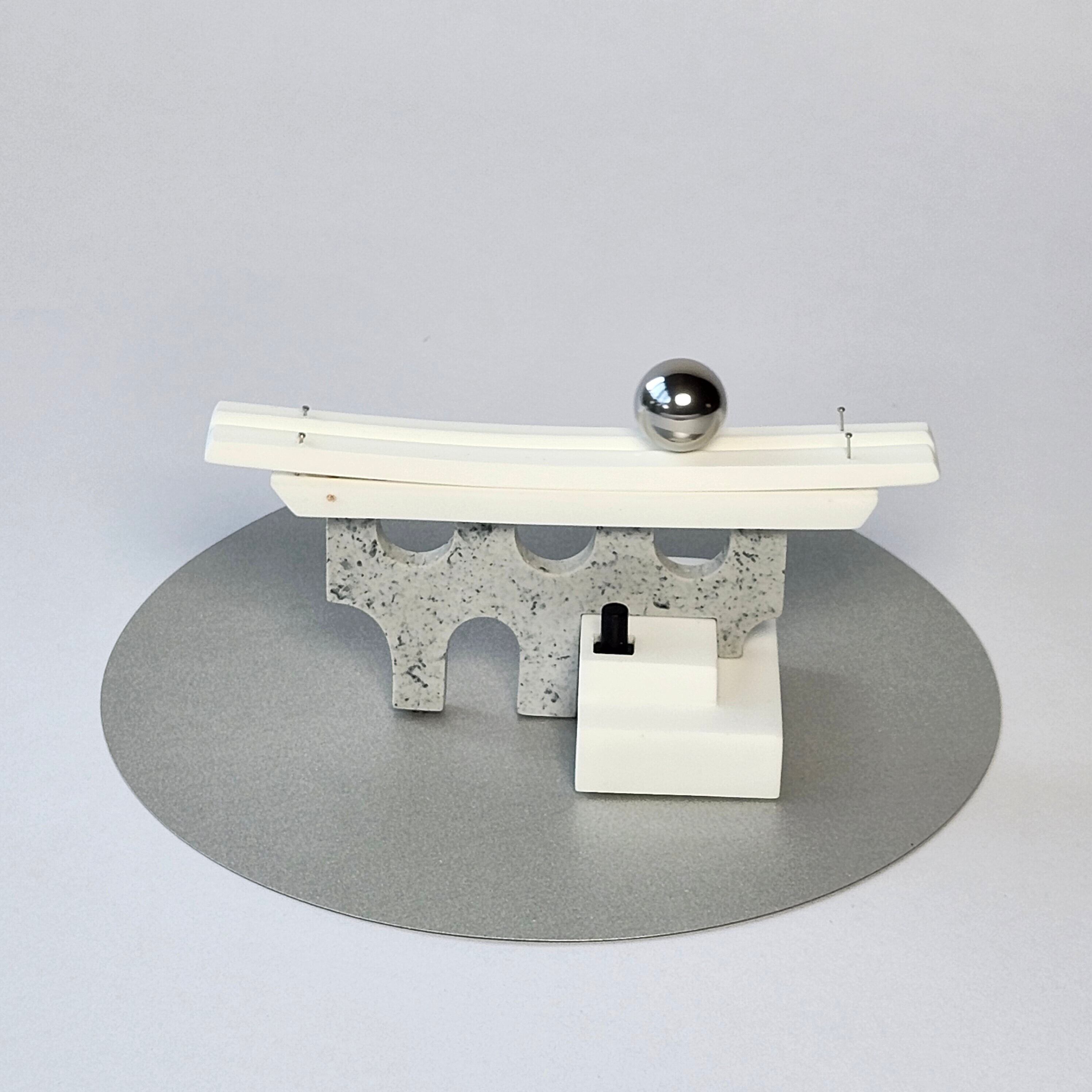 銀色の鉄球が揺れるオブジェです