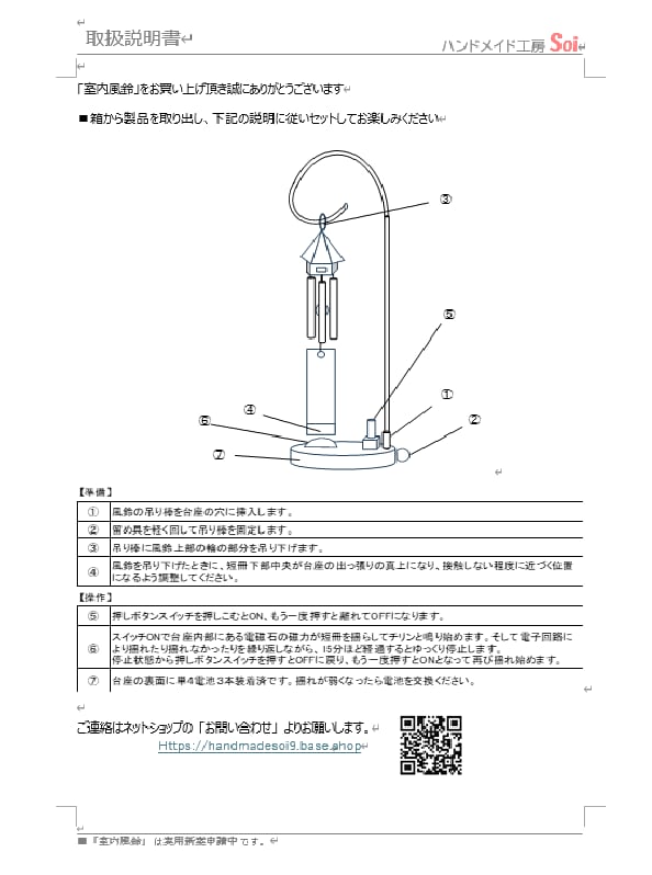 スイッチONで台座内部にある電磁石の磁力が短冊を揺らしてチリンと鳴り始めます。そして電子回路により揺れたり揺れなかったりを繰り返しながら、15分ほど経過するとゆっくり停止します。